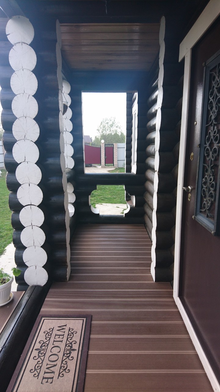 Село Троица в Сылвенском сельском поселении Пермского района Пермского края. Осуществили поставку террасной доски Декрон и ступеней для деревянного коттеджа из оцилиндрованного бруса.
